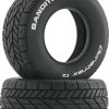 This is a set of two Duratrax Equalizer C2 1/8 scale Buggy Tires mounted on White Wheels. FEATURES: Designed for competition INCLUDES: Two 1/8 scale C2 (soft compound) buggy tires with foam inserts mounted on white wheels SPECS: Width: 1-5/8" (41.3mm) Diameter: 4-3/8" (111mm) Hex Size: 17mm COMMENTS: C2 indicates soft compound. DuraTrax C2 is comparable to Pro-Line (reg) M3 compound and AKA Soft compound. These tires are available unmounted (without wheels) pjw 12/13/11 ir/jxs