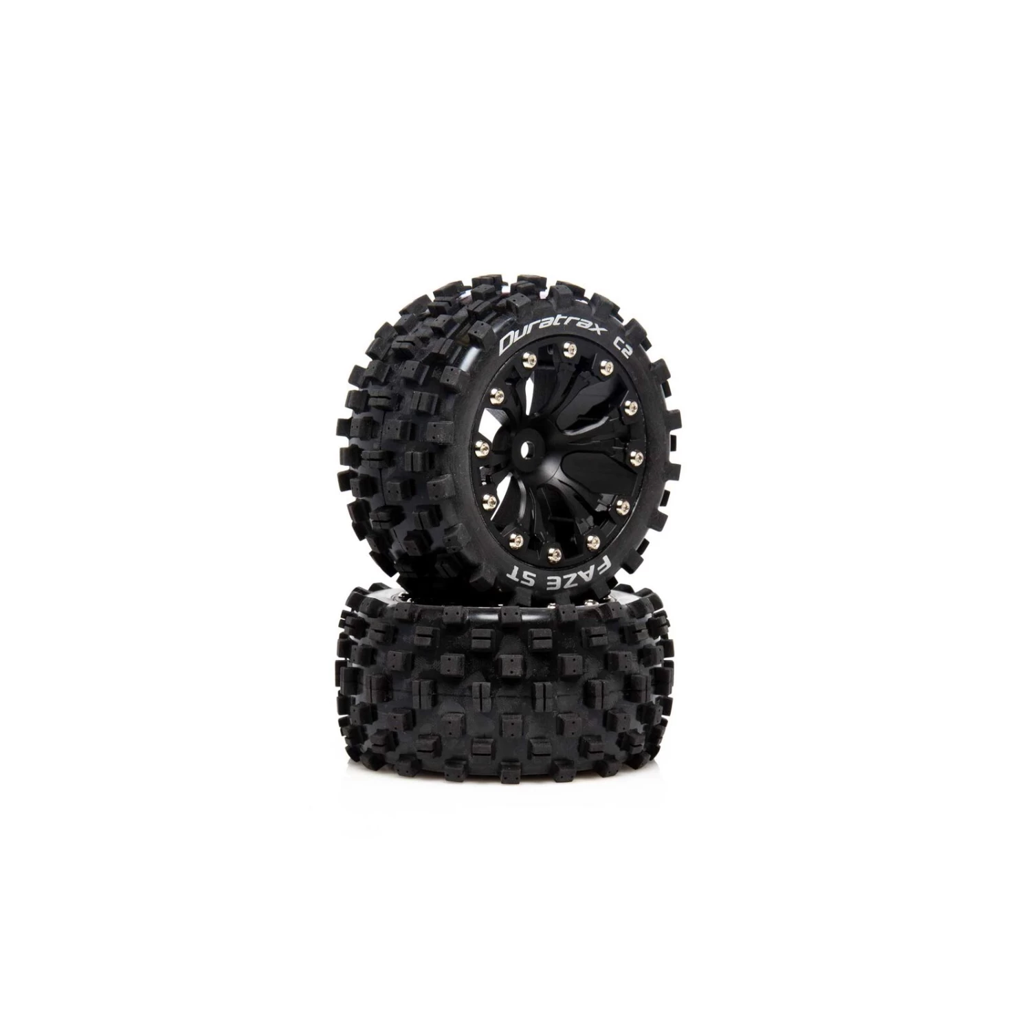 Factory-mounted with zero offset, these Duratrax® FAZE™ ST front/rear tires for 1/10 scale 2WD stadium trucks feature a tread pattern that’s ideal for a wide variety of surfaces — pavement, hard-packed dry and wet tracks, grass, mud, and loose, dry and loamy surfaces. The wheels are molded from a durable black composite plastic with a 12mm hex and 2.04 inch (52mm) width. The tires are made from high-traction, C2 soft compound and are 4.1 inches (105.3mm) in diameter. Sold in pairs.