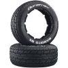 A set of four (4) Duratrax part #DTXC2809, Front/Rear Premounted Soft 12mm 5-Blade Chrome 2mm Offset ST Tires, Radial