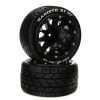 A set of two (2) Duratrax part #DTXC5518, Lockup MT Front/Rear Belted 2.8″ 2WD Mounted Tires, 0.5 Offset, Black