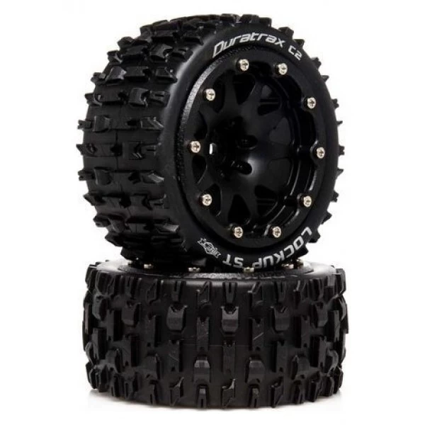 A set of two (2) Duratrax part #DTXC5533, Lockup ST Belted 2.8″ 2WD Mounted Rear Tires with 0.5 Offset, Black