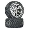 Factory-mounted with a .5 offset, these Duratrax® STAKKER™ ST front/rear tires for 1/10 scale 2WD stadium trucks feature an aggressive Motocross tread pattern that’s well-suited for racing and bashing. The wheels are molded from a durable black composite plastic with a 12mm hex and 2.04 inch (52mm) width. The tires are made from high-traction, C2 soft compound and are 4.1 inches (105.3mm) in diameter. Sold in pairs.